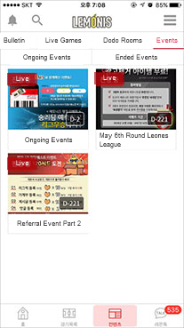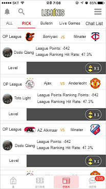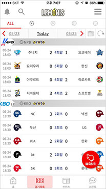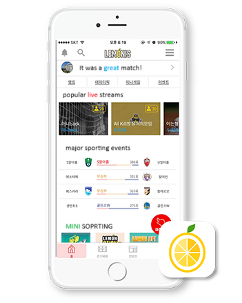 Lemonis is a mobile app that allows you to easily access sports-related content such as live scores, real-time broadcasts, match information (teams/leagues), domestic and international odds, news and videos, and predictive analysis. You can also enjoy games by chatting with other users through sports SNS (Lemon Talk).