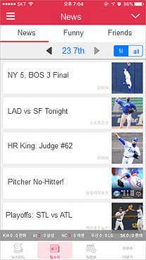 Yakwangpan is an app for baseball fans that provides customized sports curation service where you can view various baseball content such as baseball broadcasts, baseball cheering songs, news/videos, game schedules and records, team and player SNS, etc.